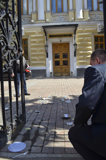 В 12 часов из разных точек, в основном женщины, с детьми, некоторые с колясками, подошли к главному входу в Государственную думу и прошли под окнами здания, стуча лодками об пустые тарелки, скандируя: “Люди голодают! Сотрудники полиции среагировали лишь когда группа женщин, около 30-40 человек уже отошли от здания Госдумы и не стали никого задерживать. Протестующие переместились к зданию Центробанка России, где одев на себя майки с надписью: “Раб валютной ипотеки”, бросили к дверям здания пустые тарелки и ложки с прикрепленными записками-посланиями к Центробанку России. Вход в здание Банка России был усыпан осколками тарелок, ложками и листами с посланиями.